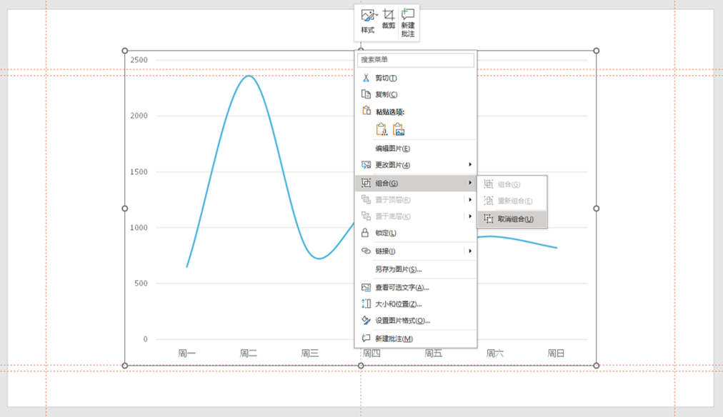 编辑搜图选中折线图的曲线和插入的填充矩形,对其进行布尔运算【拆分】