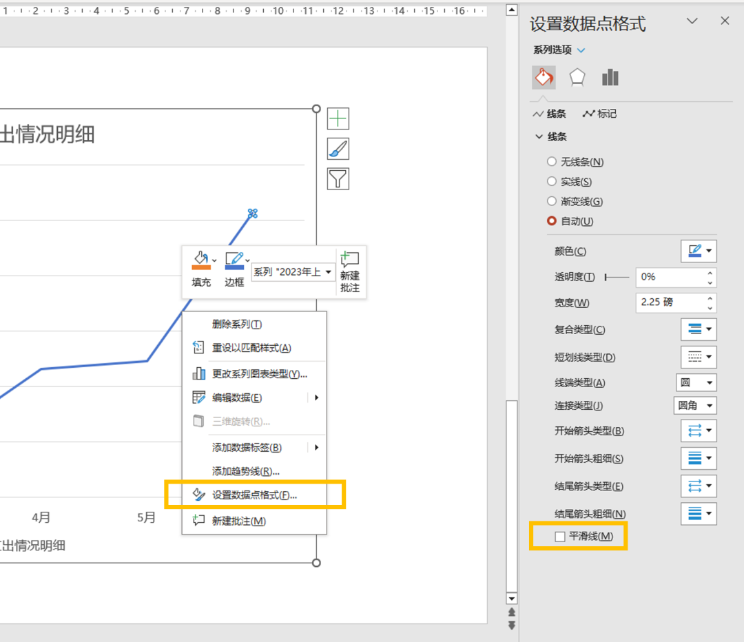就可以得到线条柔和的折线图